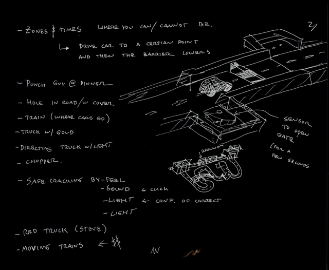 In both Peter Collinson’s and F. Gary Gray’s renditions of The Italian Job, the image of safe-cracking is particularly prevalent, and with this in mind, TeamMini chose to incorporate lock manipulation into its Flicker. We would build a game that required the player to crack a safe, the old-school way. |