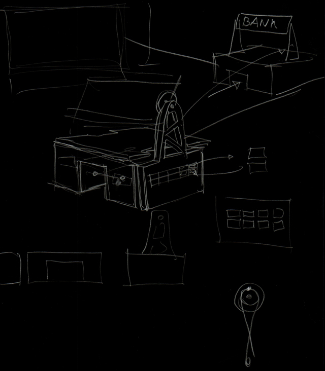 | The first sketches of the safe did not incorporate a fully-functioning door, as this was a complication that we were not ready to tackle at the time. |