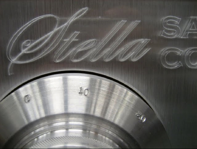 | Some details of the safe dial are worth mentioning now: The dial knob was knurled with a large knurling tool to give the proper touch-feel to the dial, and numerals were stamped by hand into the dial face with a set of dies after the part was sanded and polished. The lock lever arm was pressed into its base at a thirty degree angle to provide clearance for the user’s hand. |