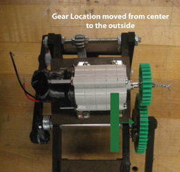 For our final design, we bought a Tamiya Planetary Gearbox Set so that we would have the flexibility to change the gear ratio if necessary.  We decided to use the Tamiya gear reduction of 100:1 and add an extra gear reduction outside the motor of 5:3, giving an overall gear reduction of 167:1.  This resulted in an adequate speed of locomotion up the slope in under thirty seconds.  At this gear ratio, we measured an output torque of 0.84 Nm at stall conditions.  Although this is above our worst-case design requirement, we decided it would be beneficial to have a safety factor of available torque over the worst-case scenario in order to account for frictional losses in the design.
