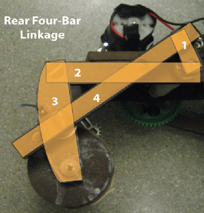 Figure 3: Rear four-bar linkage; Figure 4: Front four-bar linkage